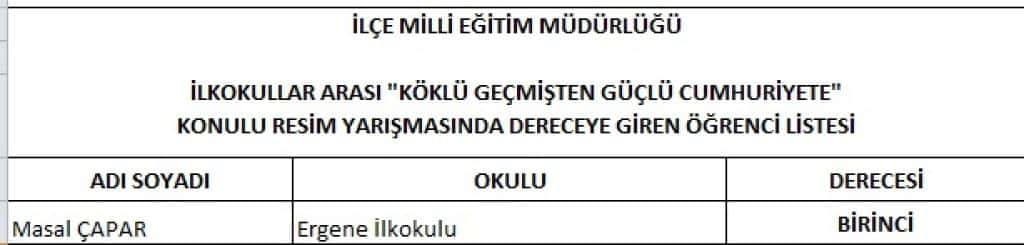 4/B Sınıfı Öğrencimiz Masal ÇAPAR İlçe Birincisi Oldu.